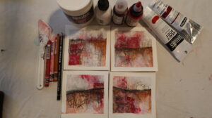 geht an Laly Mille, die mich in ihrem Kurs „Soulful Abstracts“ damit vertraut gemacht hat, neue Techniken direkt in Serie auszuprobieren. Aus diesem Ausprobieren ist für mich etwas sehr Eigenes entstanden. Diese Mixed Media-Miniserien haben in meinem künstlerischen Leben einen großen Stellenwert erlangt. Inzwischen sind über 100 davon entstanden. In Lalys Blog durfte ich darüber einen Gastartikel schreiben. Du findest ihn auch hier auf meiner Webseite: Die Magie der Vier.