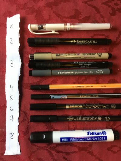 Doch wie bei jedem Künstlermaterial: mit zunehmender Vertrautheit steigen die Ansprüche und du wirst dir weitere Stifte und/oder anderes Papier zulegen (wollen). Folge da deinen Wünschen und dem, was dir Freude bereitet. Ein guter Stift kann dir lang Entzücken schenken!